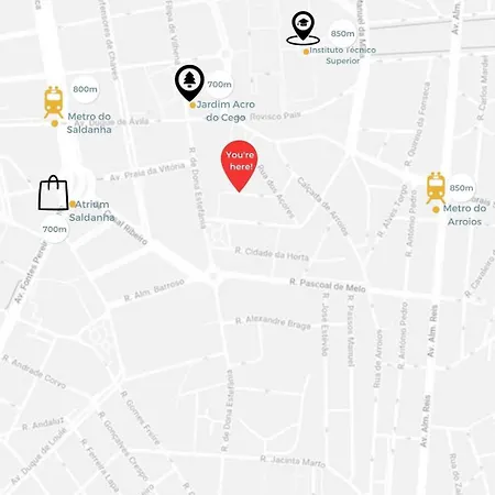 До Лісабонського океанаріуму можна дістатися на автомобілі за кілька хвилин, а Espaco Exibicionista знаходиться прямо біля апартаментів. Найближча автобусна зупинка Hospital Dona Estefania знаходиться за 300 метрів, а Проспект Ліберті - за 17 хвилини пішки.